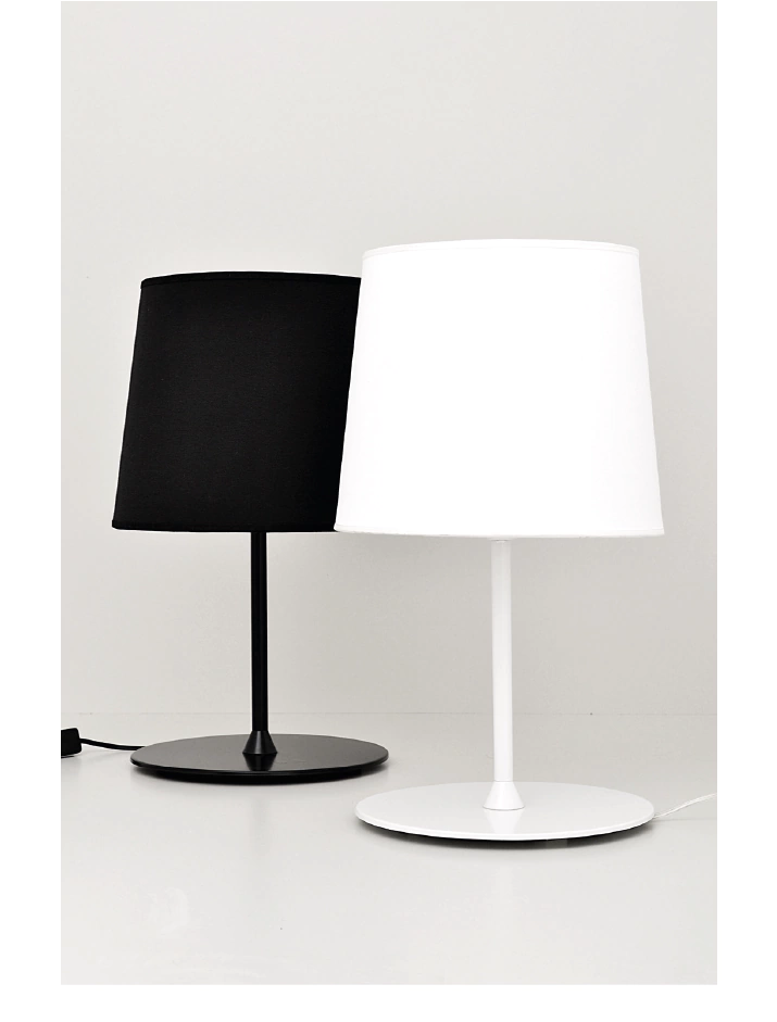 Lámpara de mesa Milan de hierro con pintura satinada y pantalla en gross.