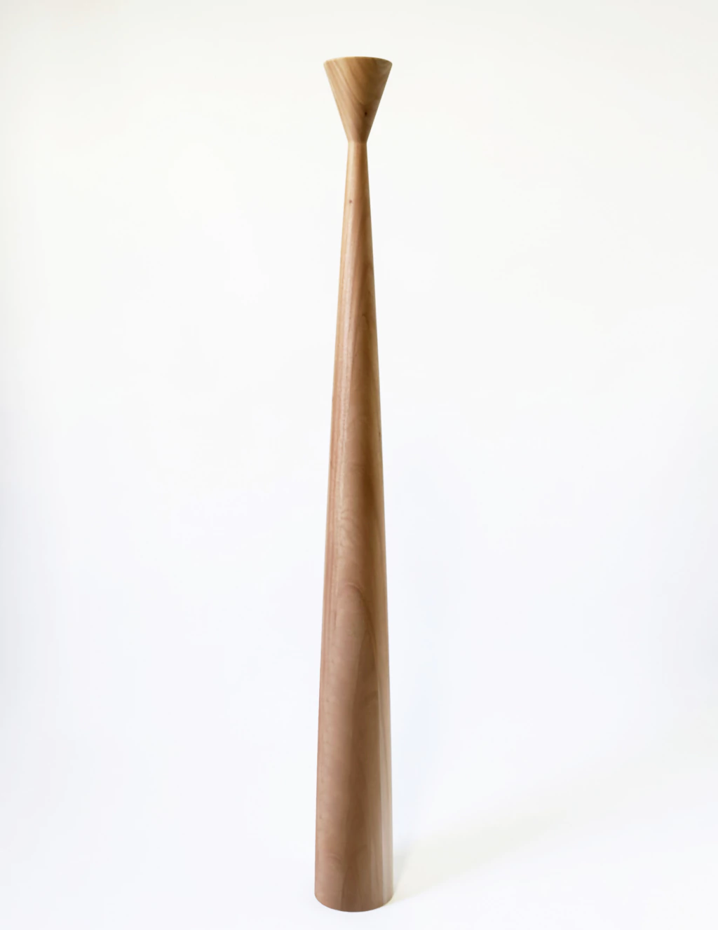 Pie contruido madera maciza de cedro torneada a mano. Inclue placa de LED de 15w 3000k y fuente.